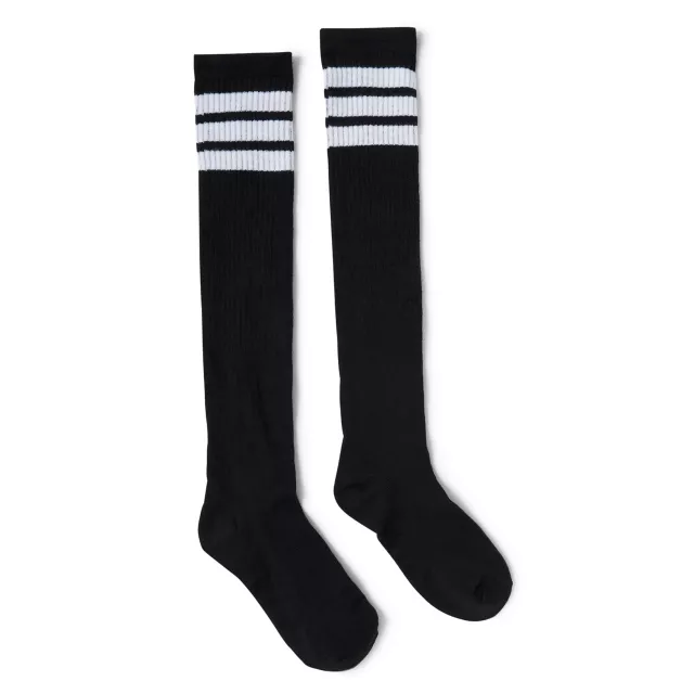 Looking to spice up your favorite outfit? These Black and White Striped Knee High Socks will add the perfect accent to your look.