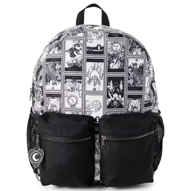 If you are constantly relying on tarot cards to help with major decisions in your life then you'll love rocking this Black and White Tarot Card Print Backpack. Featuring two convenient front zipper pockets, this backpack will have no issues holding your essentials and is sure to have you feeling stylish wherever you decide to bring it along.