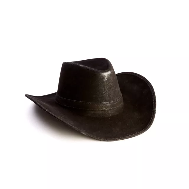 Saddle up and get ready to ride, but don't forget to top off your outfit with this Black Deluxe Cowboy Hat! The black cowboy hat features a pinched crown, curved brim, and matching band around the base. This Black Deluxe Cowboy has will make your cowboy costume (sold separately) complete this Halloween!