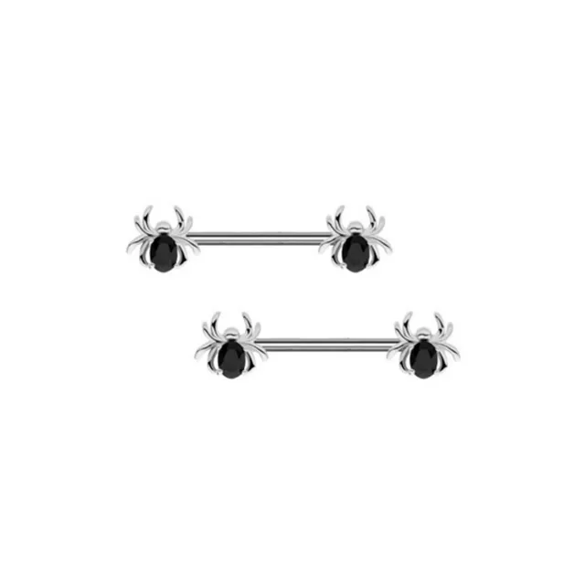 Black CZ Spider Nipple Barbells - 14 Gauge