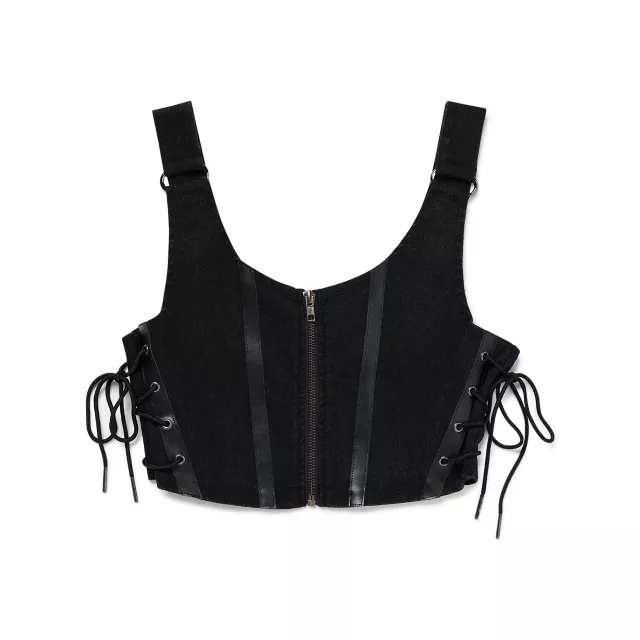 Level up your wardrobe with this exclusive Black Distressed Lace-Up Bralette. Its charming grommet and piping accents and chic shaping will have you stealing hearts anywhere and anytime.
