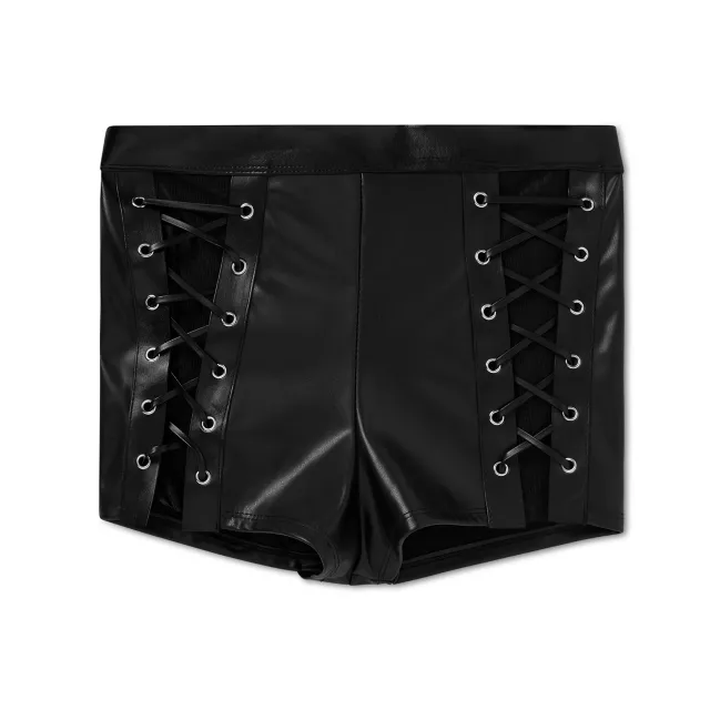 Strut your stuff in style with these Black Faux Leather Lace-Up Booty Shorts! Sleek, curve-hugging, and oh-so-chic, these shorts are perfect for creating a look that will turn heads wherever you go.