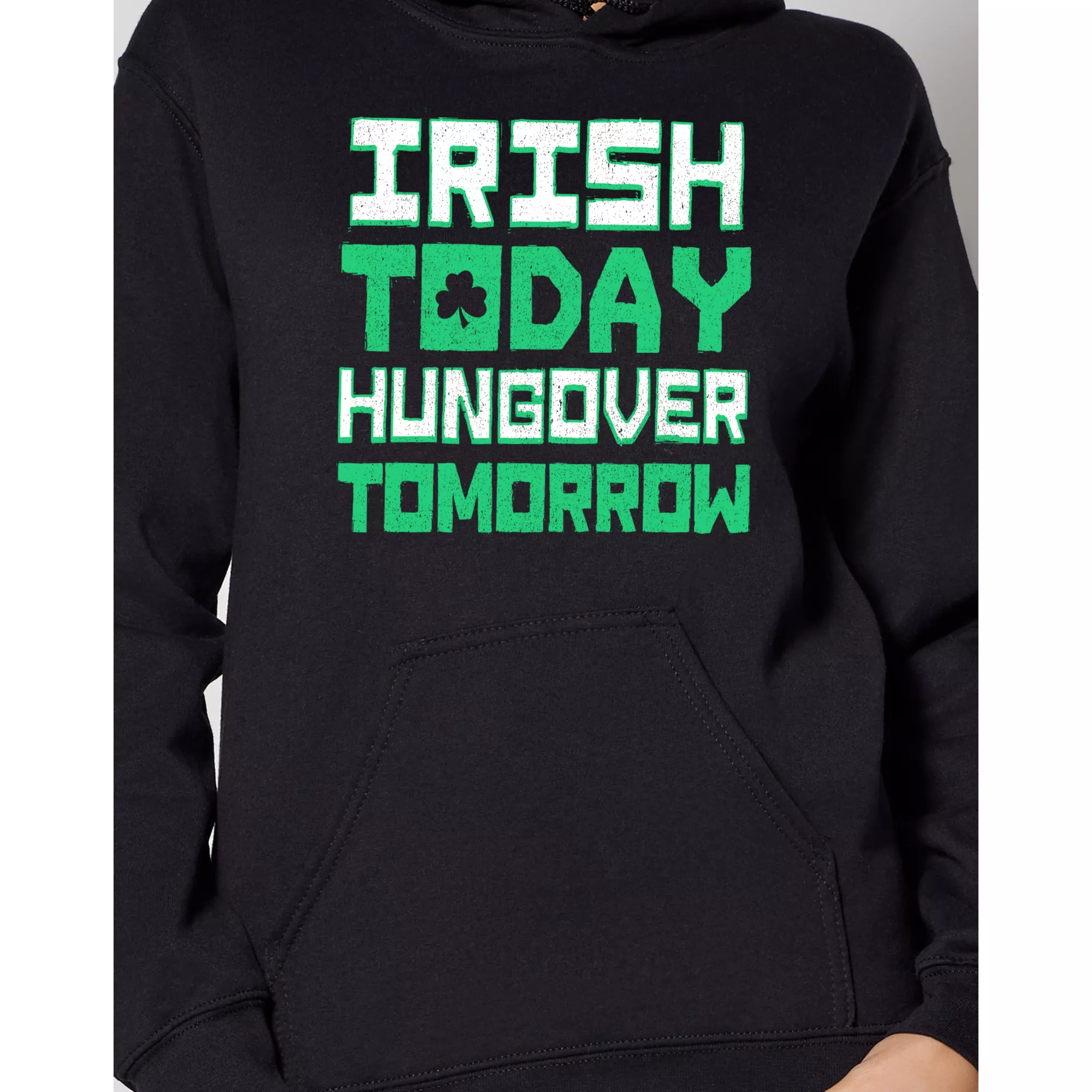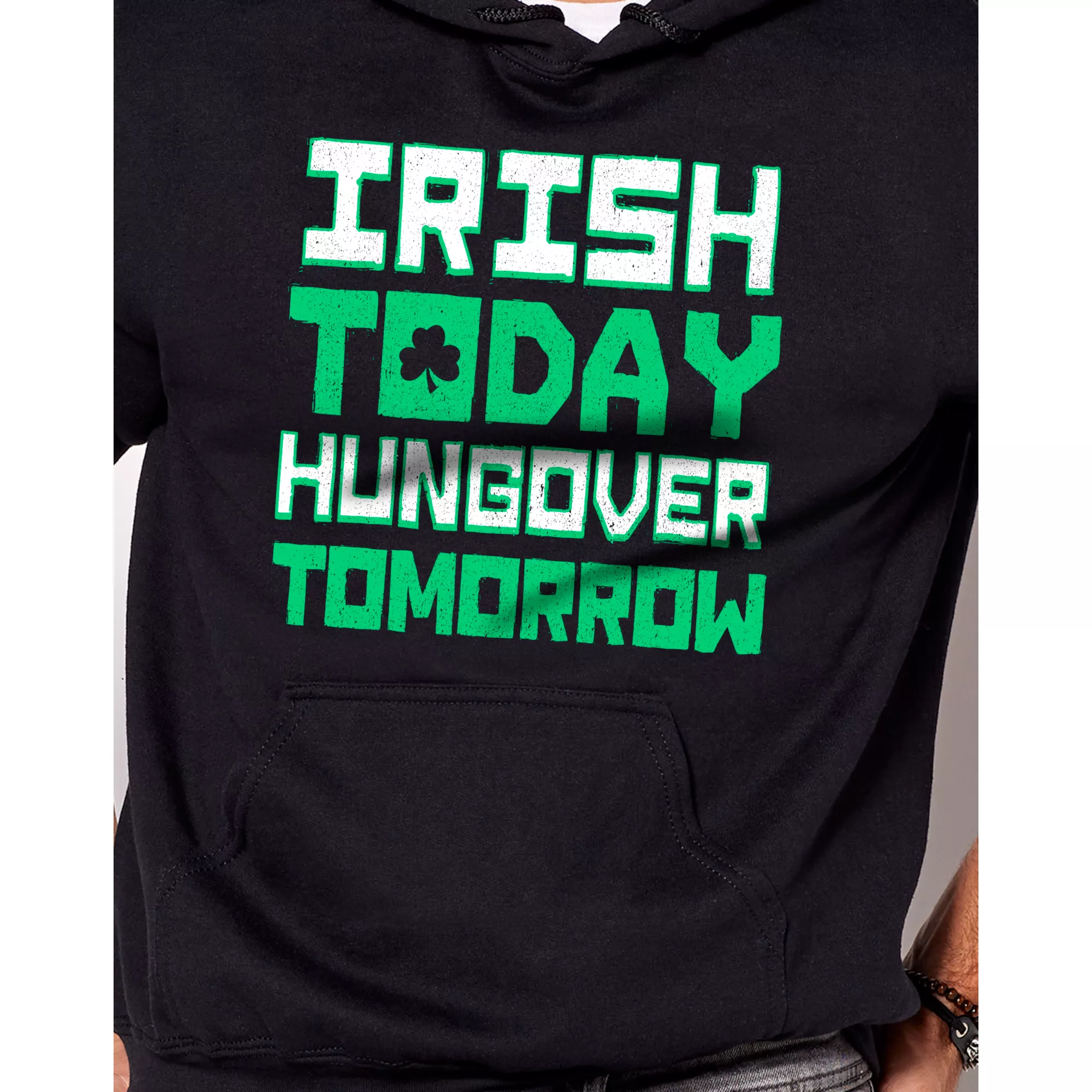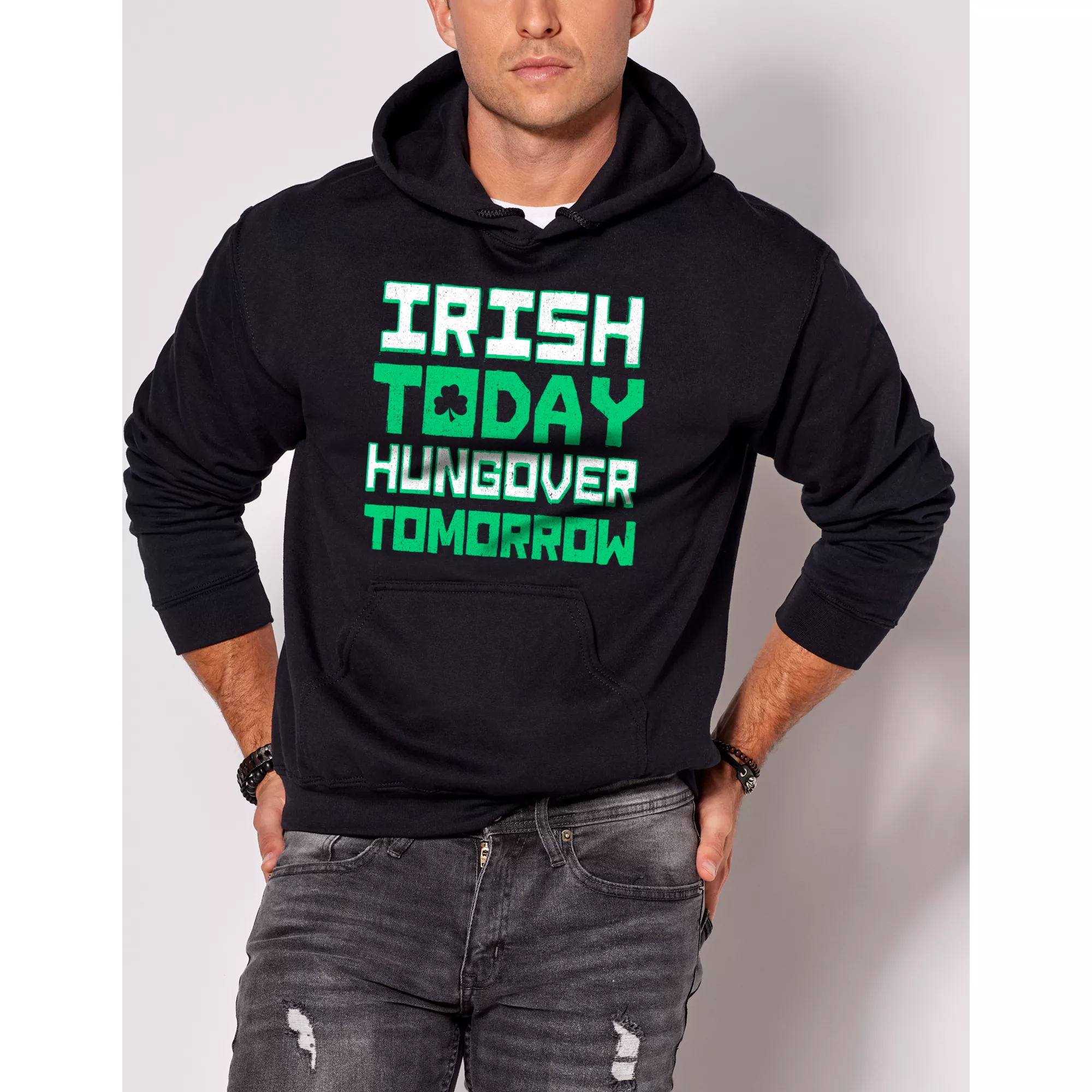Irish today, hungover tomorrow. Stay warm while you party this St. Patrick's Day when you're wearing this cozy Black Irish Today Hungover Tomorrow Hoodie.