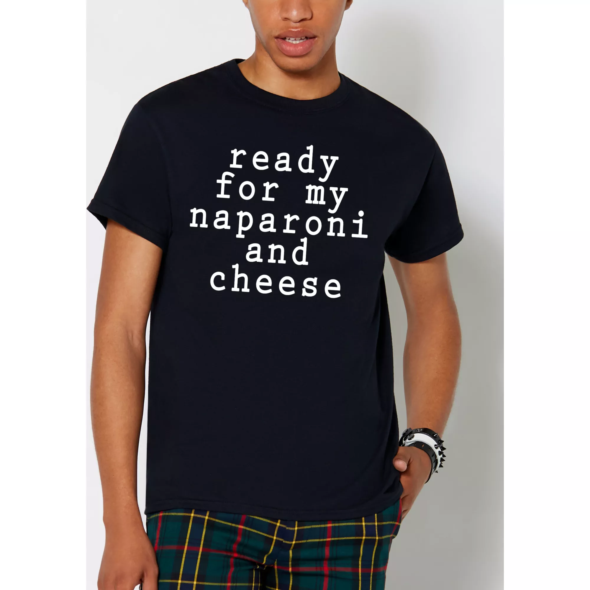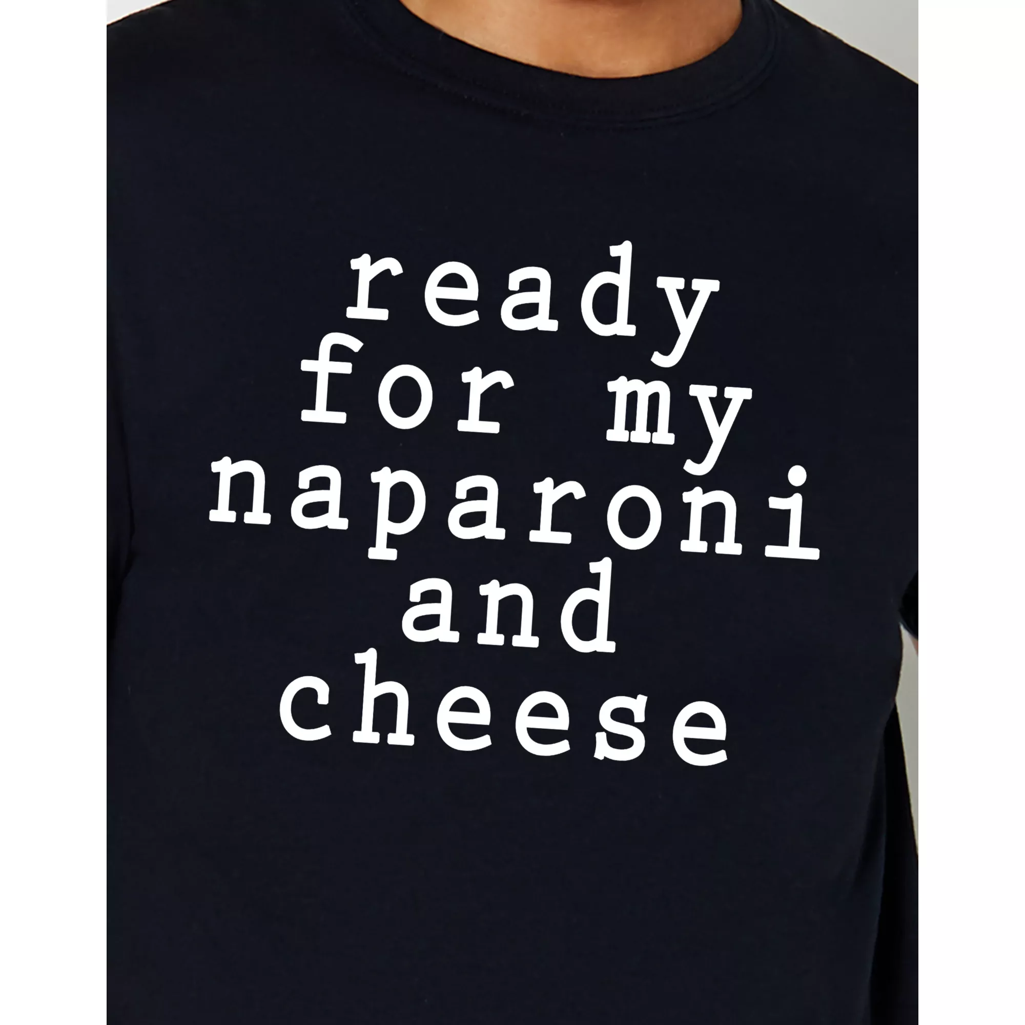 Need a naparoni and cheese? Let the world know about you're lacking sleep habits when you're wearing this hilarious Black Naparoni and Cheese T Shirt. This black cotton tee if the perfect nap-material and is sure to get some laughs.