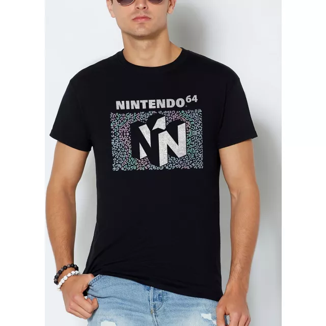If you've spent some of your best days in front of a Nintendo 64, then this t shirt is for you. This black Nintendo 64 logo tee features a vibrant print on soft cotton. Gamers, grab this graphic tee!