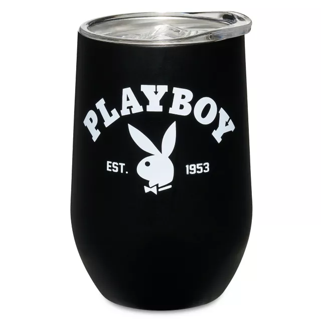Drink wine or any favorite beverage in style with this Black Playboy Wine Cup! This fun stainless steel cup with secure lid is sure to be a great addition to your kitchen!