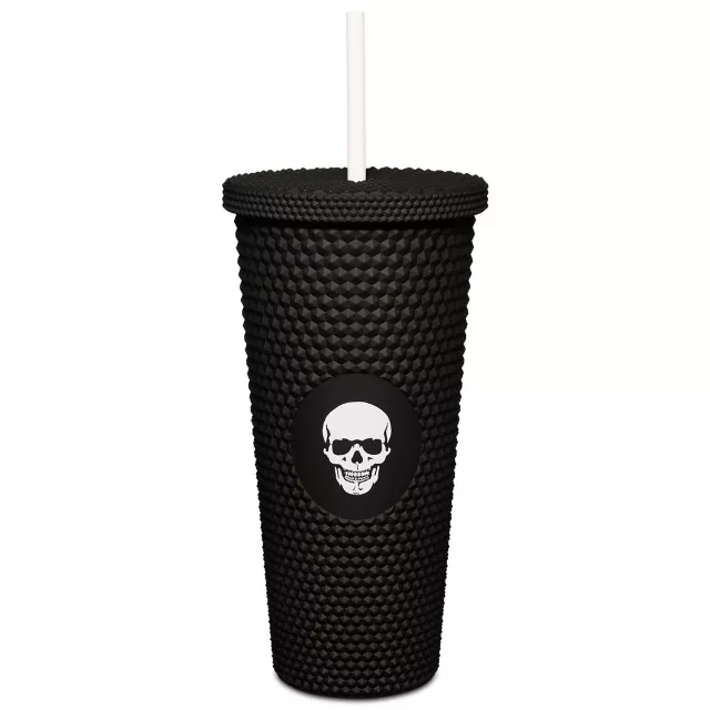 Get a travel cup as edgy as you with this Black Skull Textured Cup with Straw. This cup is 20 oz. and easy to take on the go or at home.