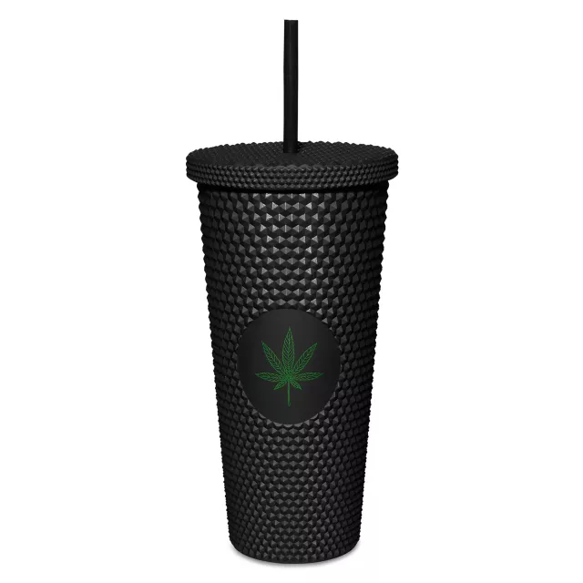 Show your love for your favorite pastime and look good doing it with this stylish cup! This sleek black cup includes a matching black straw and is covered from top to bottom in textured detailing. Centered with an instantly recognizable green leaf, this cup is sure to be a dope addition to your look.