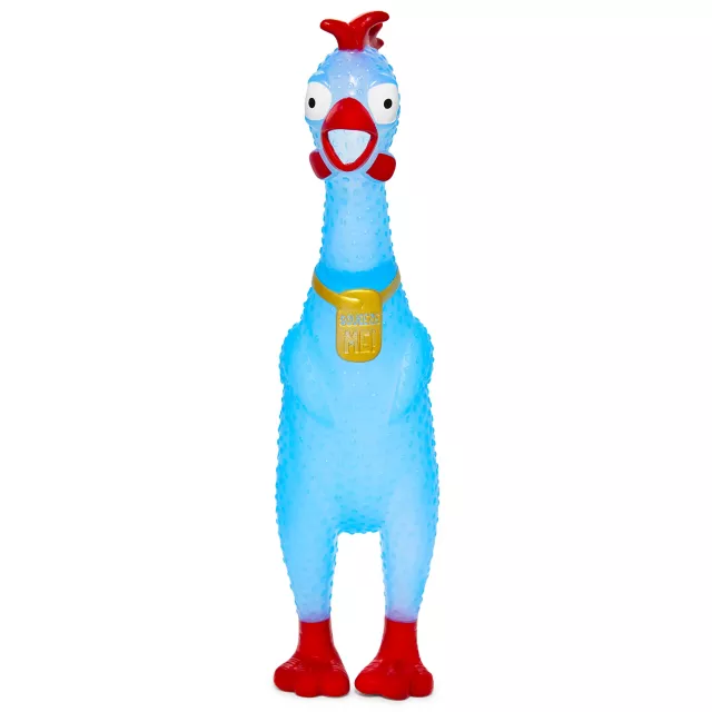 Who are you calling chicken? This bright blue squeeze plastic chicken makes a hilarious gift or gag for your friend who is always looking for a laugh.