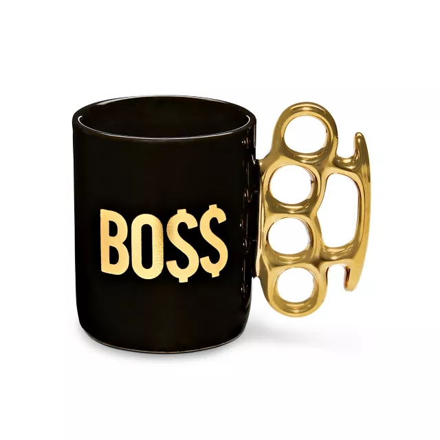 Show everyone you're a complete boss when you take a shot from this brass knuckle handle shot glass. This black shot glass features the word BO$$ printed on it and has an awesome brass knuckle handle design! You're really a boss if you have a shot glass that says it too!