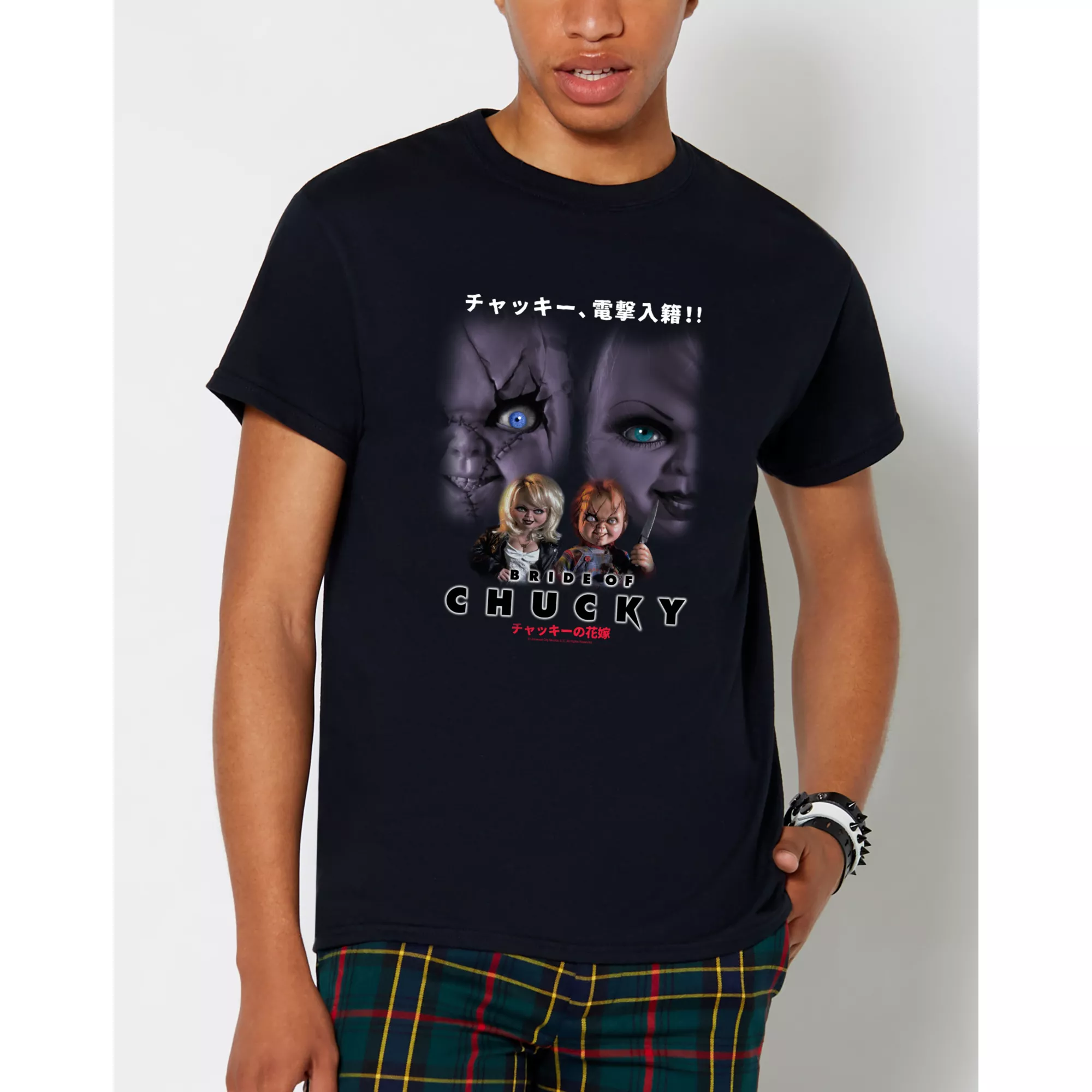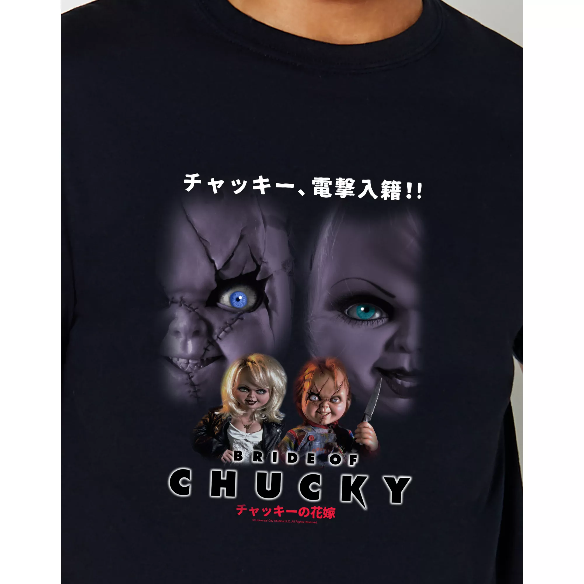 Upgrade your wardrobe with your two favorite horror icons when you add this Bride of Chucky Japanese T Shirt to your look! This officially licensed tee, which features Chucky and Tiffany, will add double the terror to your ensemble.