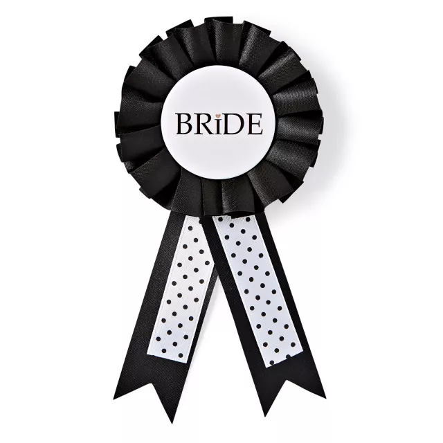 Go 'head, girl! Show off your ring and let everyone know you're the guest of honor when you wear this black and white bride pin! It's perfect for your bridal shower or your bachelorette party!