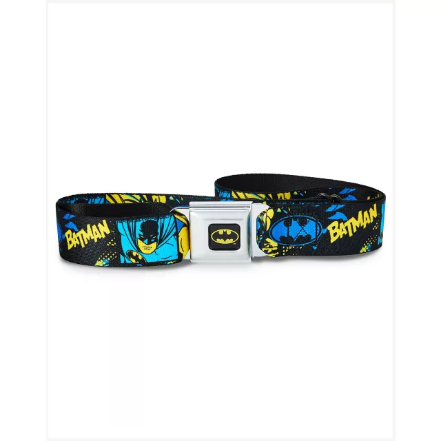 Channel your inner dark knight when you suit up with this Buckle-Down Batman Comic Print Seatbelt Belt! This adjustable, seatbelt-inspired accessory is perfect for making any outfit feel super.