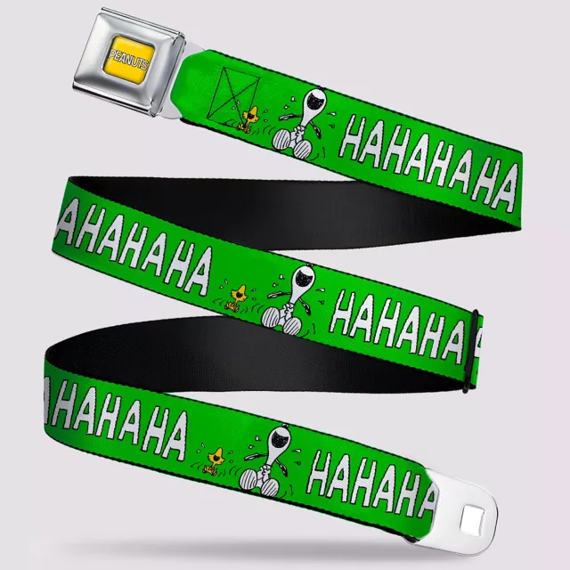Show some love for these beloved Peanuts characters with this officially licensed Buckle-Down Snoopy and Woodstock Seatbelt Belt. This eye-catching belt features Snoopy and Woodstock laughing together with a Peanuts logo belt clip.