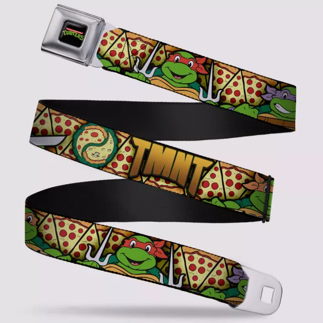 Style a fit that looks good enough to eat when you sport this officially licensed Buckle-Down Teenage Mutant Ninja Turtles Pizza Seatbelt Belt! This pizza print accessory is sure to put the finishing touch on any TMNT fan's look!