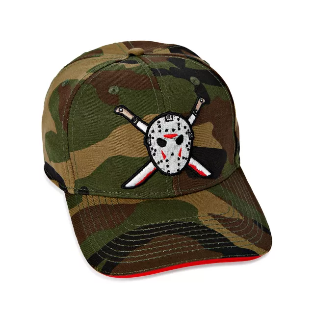 Top off your look with some killer style when you decide to wear this officially licensed Camo Jason Voorhees Snapback Hat. With this camo snapback on everyone will know you're a fan of the classic Friday the 13th slasher films. This Jason Voorhees snapback will make a perfect addition to any horror fans collection.
