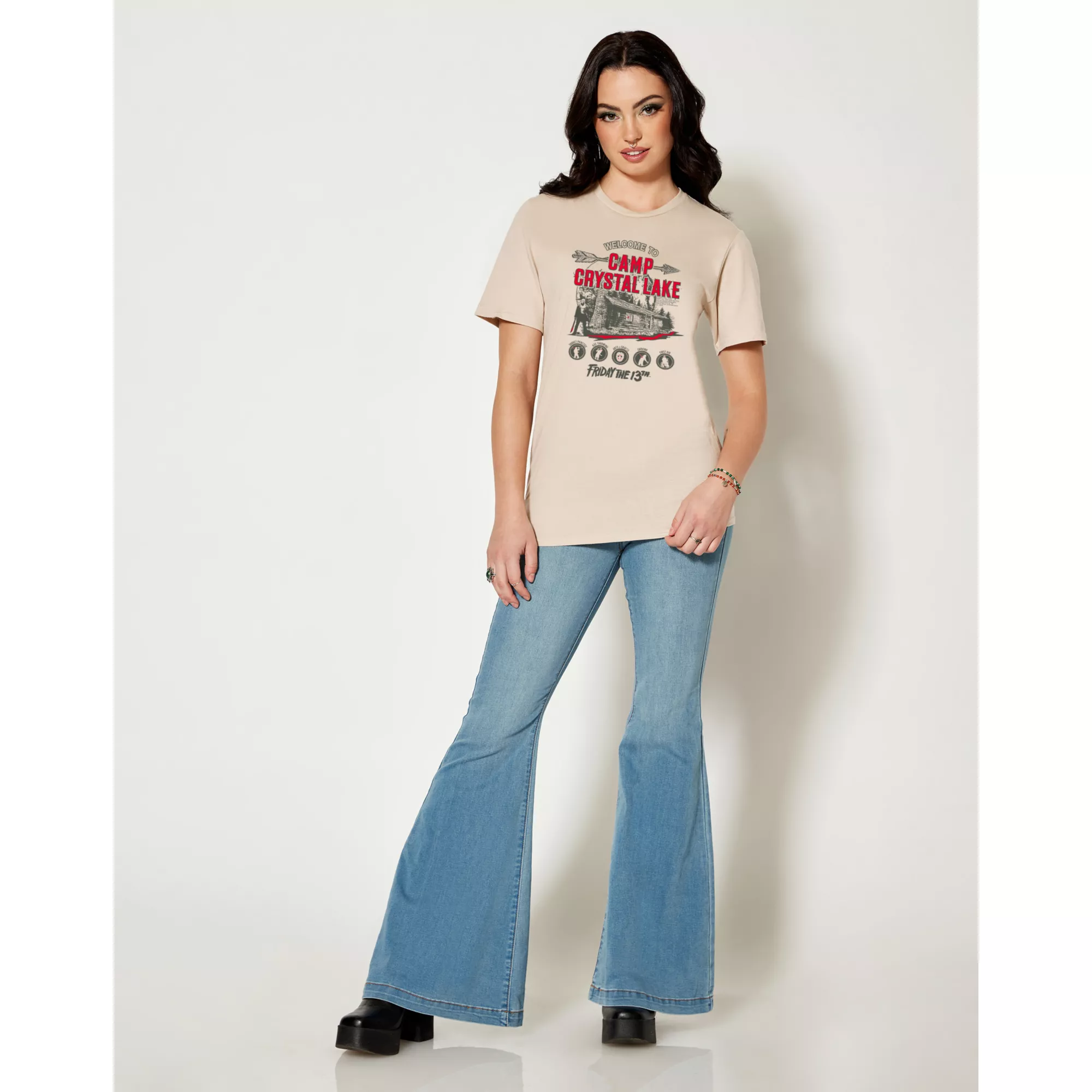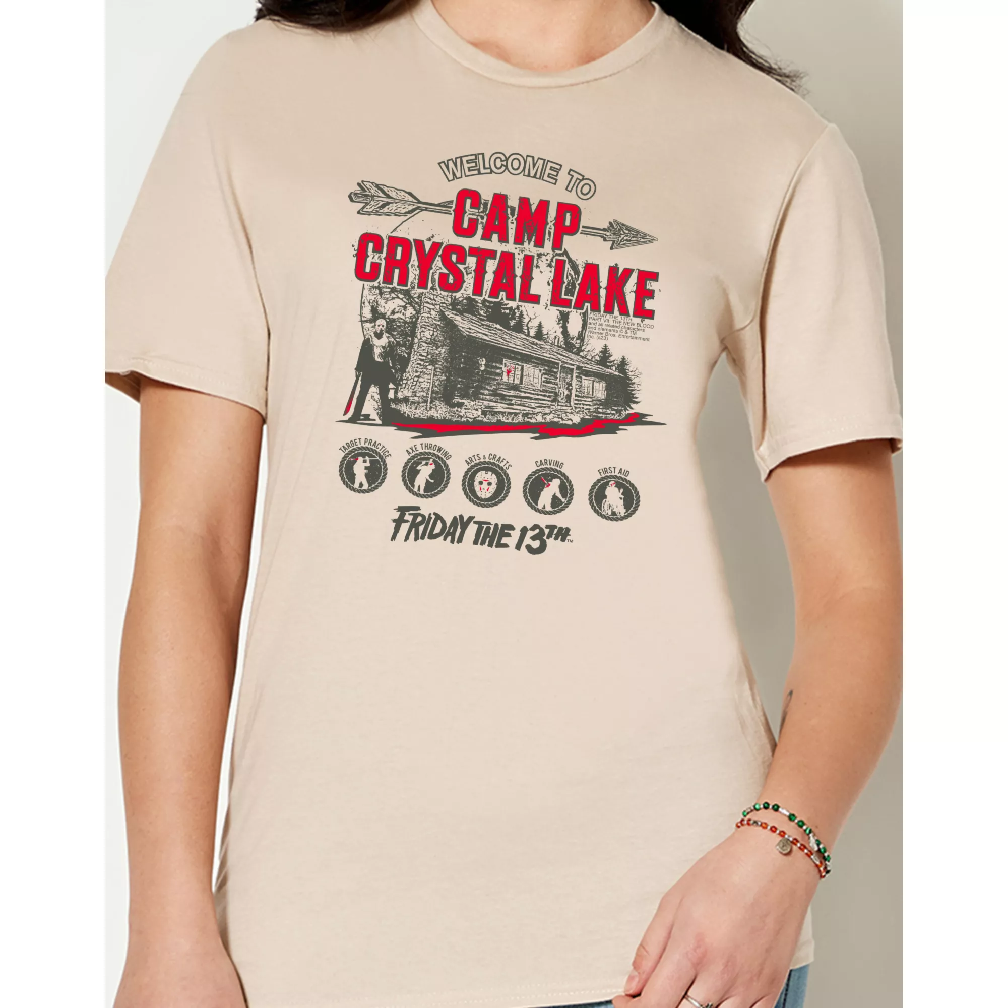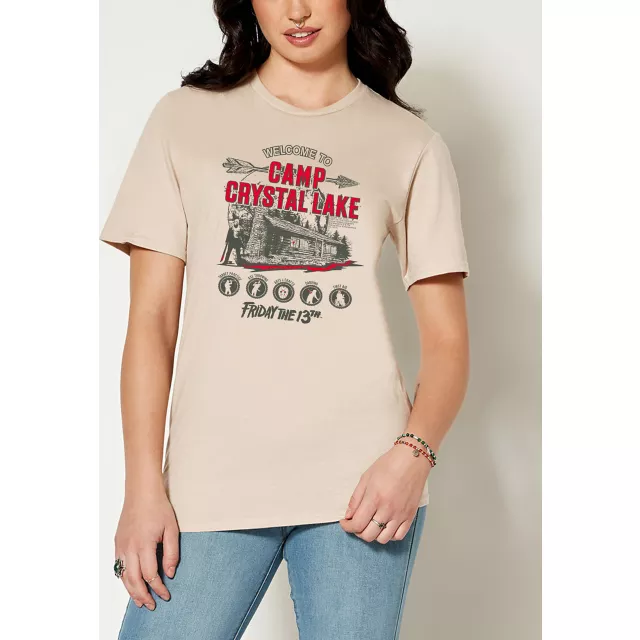 Everyone will know what you're binging when you show off your taste in movies with our officially licensed Camp Crystal Lake T Shirt! Suit up in this stylish tee and you'll always be showing your fandom.