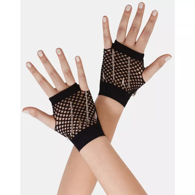 Your dreams of looking like a rock star will come true when you put on these Chain and Mesh Fingerless Gloves! Crank up the volume and rock out with these sick gloves.