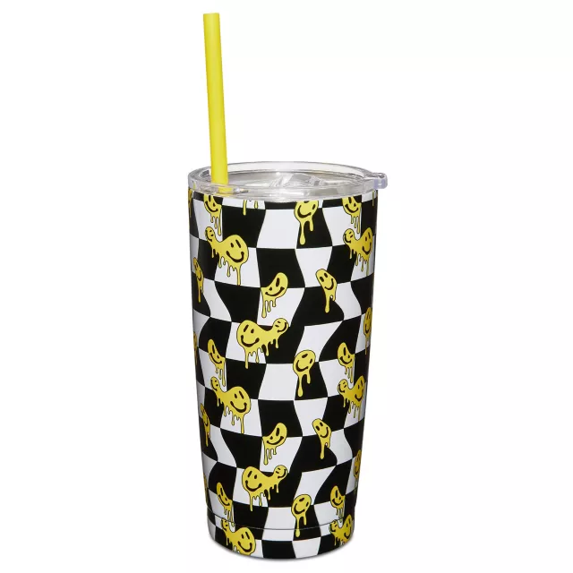 Checkered Drippy Smiley Face Cup with Straw - 20 oz.