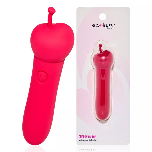 Self-love never felt as seductively sweet as it does with the Cherry on Top Bullet Vibrator by Sexology! Crafted with smooth, cherry-red silicone, a powerful motor with eight different functions, and a stylish molded end decal, this vibe makes every touch feel like a treat.
