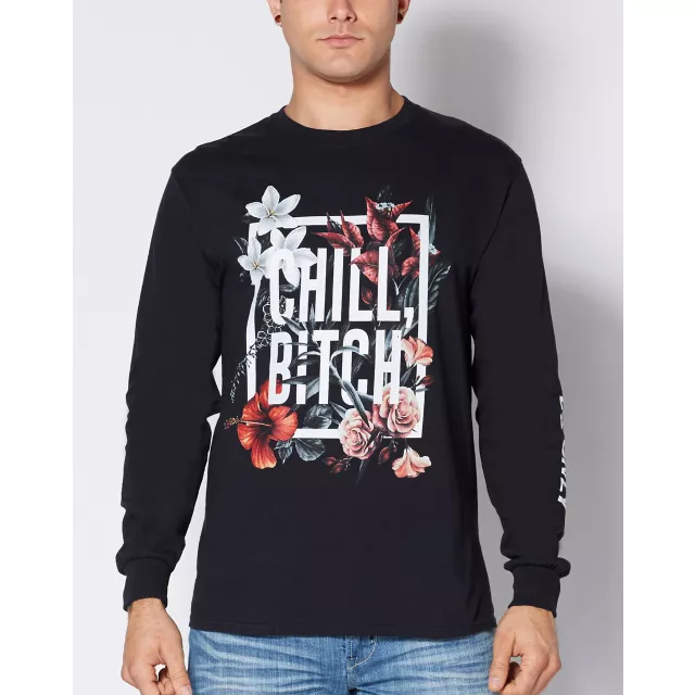 Let everyone know that only chill vibes are allowed in your area when you slip on this "Chill Bitch" floral sweatshirt! A gorgeous floral print covers the front, with the words "chill, bitch" in the center, while the words "chill vibes only" run down the sleeve of the sweatshirt. Perfect for even the chillest of people!