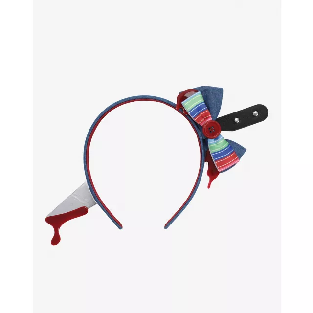Let everyone know that you're the ultimate horror fan when you sport this diabolically darling, officially licensed Chucky Bloody Bow with Knife in Head Headband! This creepy-cute headband is sure to put the perfect finishing touch on any Chucky-inspired look.