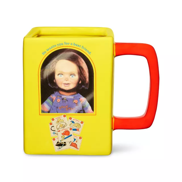 He wants YOU as a best friend! Sip from this officially licensed Chucky Good Guys Box Coffee Mug and represent your favorite horror icon! This awesome mug is molded to look like the iconic Good Guys doll box.