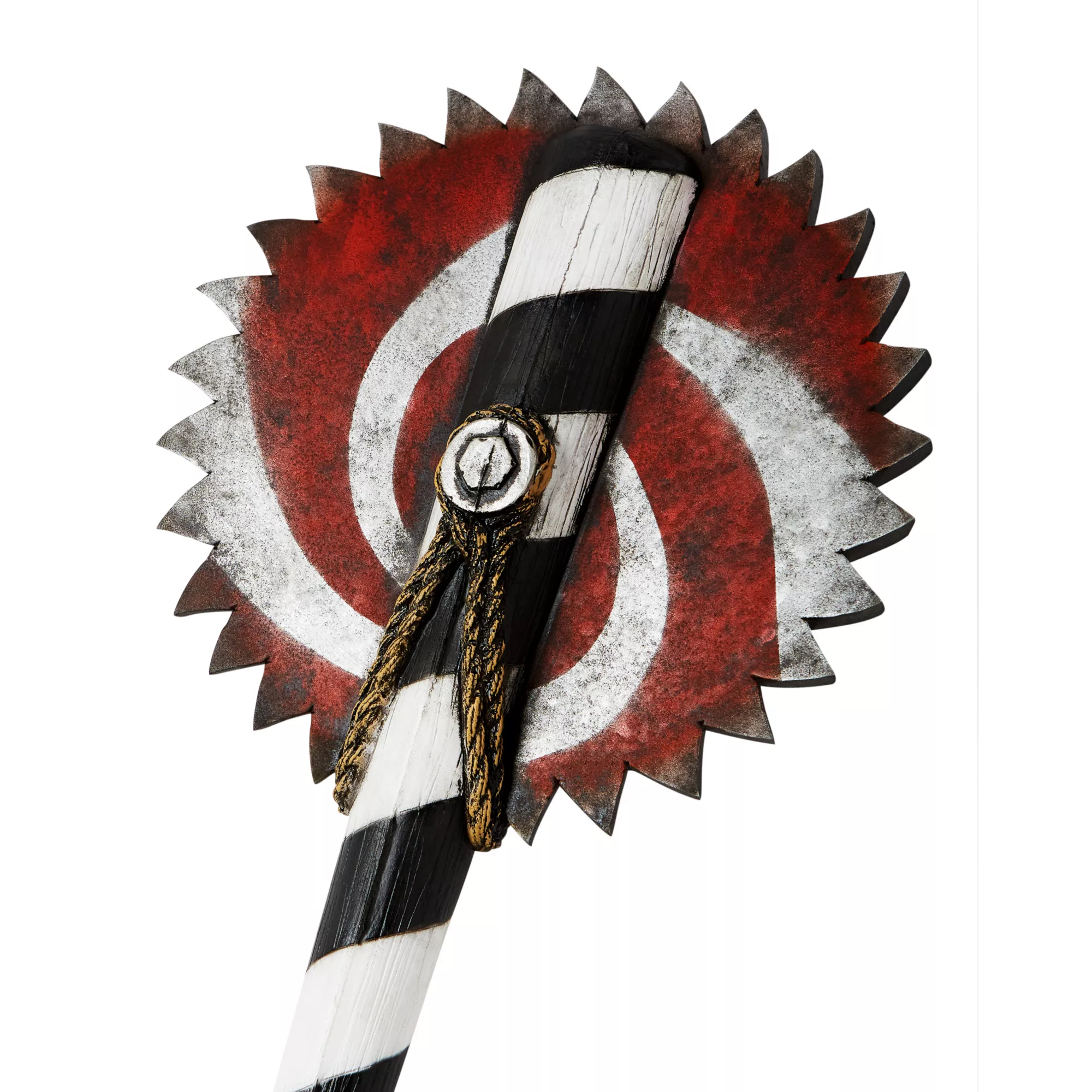 Slash up some laughs with this crazy fun circus saw bat! This frightening accessory features a rusty, circular sawblade, a black and white striped body, and a blue and yellow striped handle. You’ll be the scariest clown at the carnival with this petrifying piece.