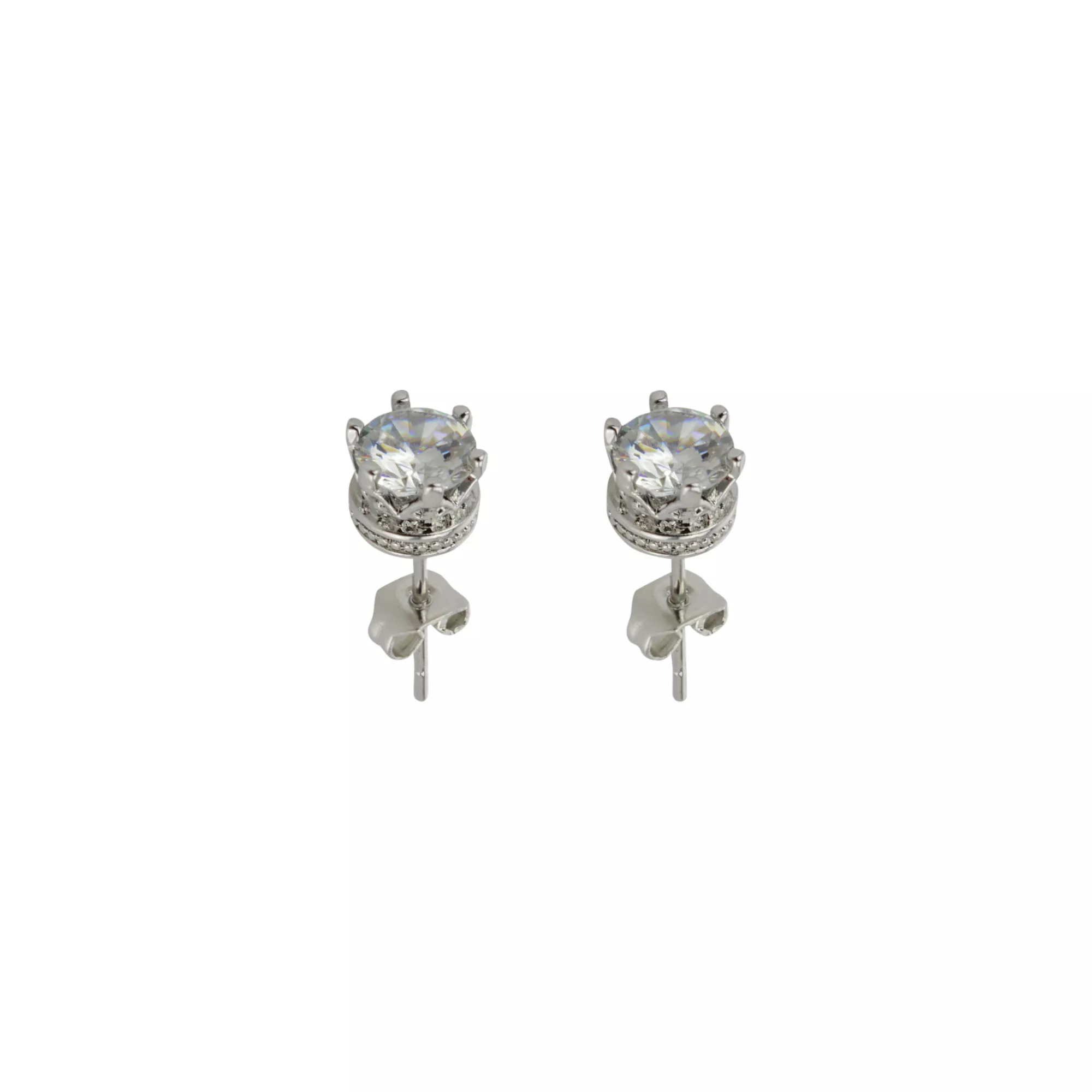 Clear CZ Prong Crown Base Stud Earrings