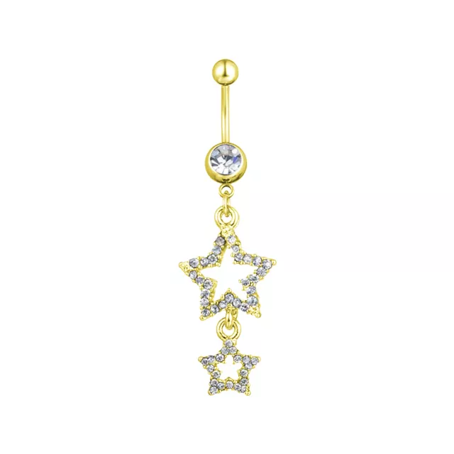 Clear CZ Star Gold-Plated Titanium Dangle Belly Ring - 14 Gauge