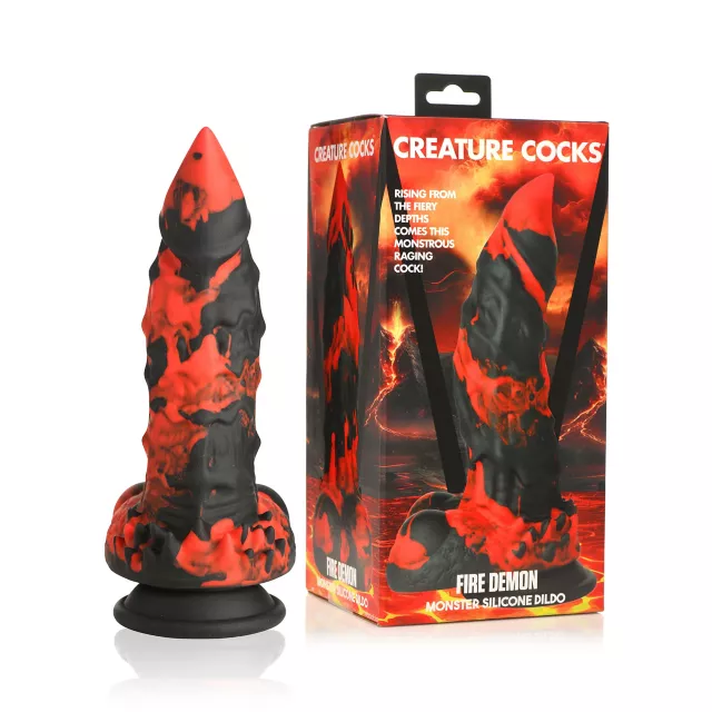 This exciting Fire Demon Monster Dildo from Creature Cocks is raring to go! Fill yourself up with this large silicone dildo and you'll savor every inch! With its textured red and black shaft and balls, you'll be ready for monster sex that will leave you with a smile on your face. Hold this monster dildo in your hand, let your partner press it inside you, wear it in a harness, or attach the suction-cup base to the wall or floor. However you use this big dildo, you'll be in for an amazing time!