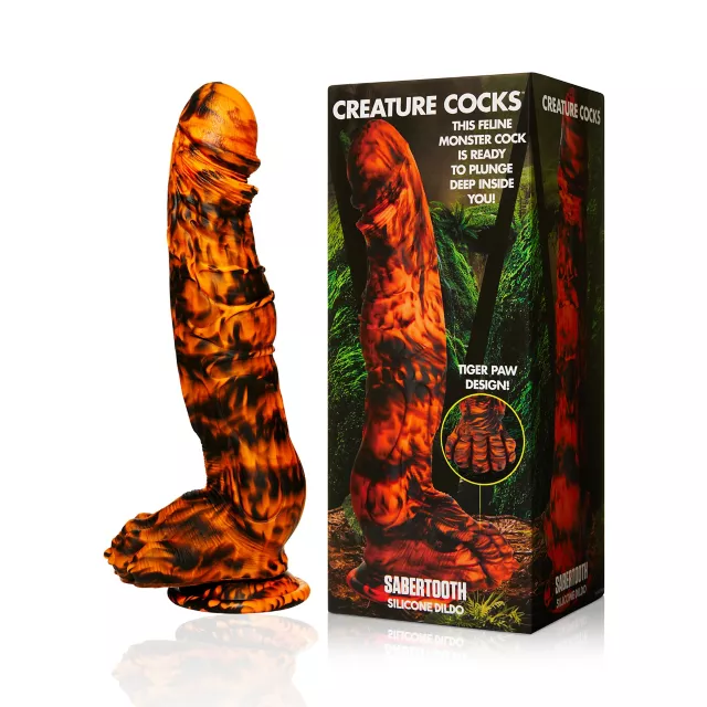 Right out of your horror fantasies comes this giant feline dildo ready to plunge deep inside you. Featuring a tiger paw designed suction base, a unique texture, and a tapered tip for easy insertion you'll be ready to live out your wildest cat dreams with this Creature Cocks Sabertooth Dildo.