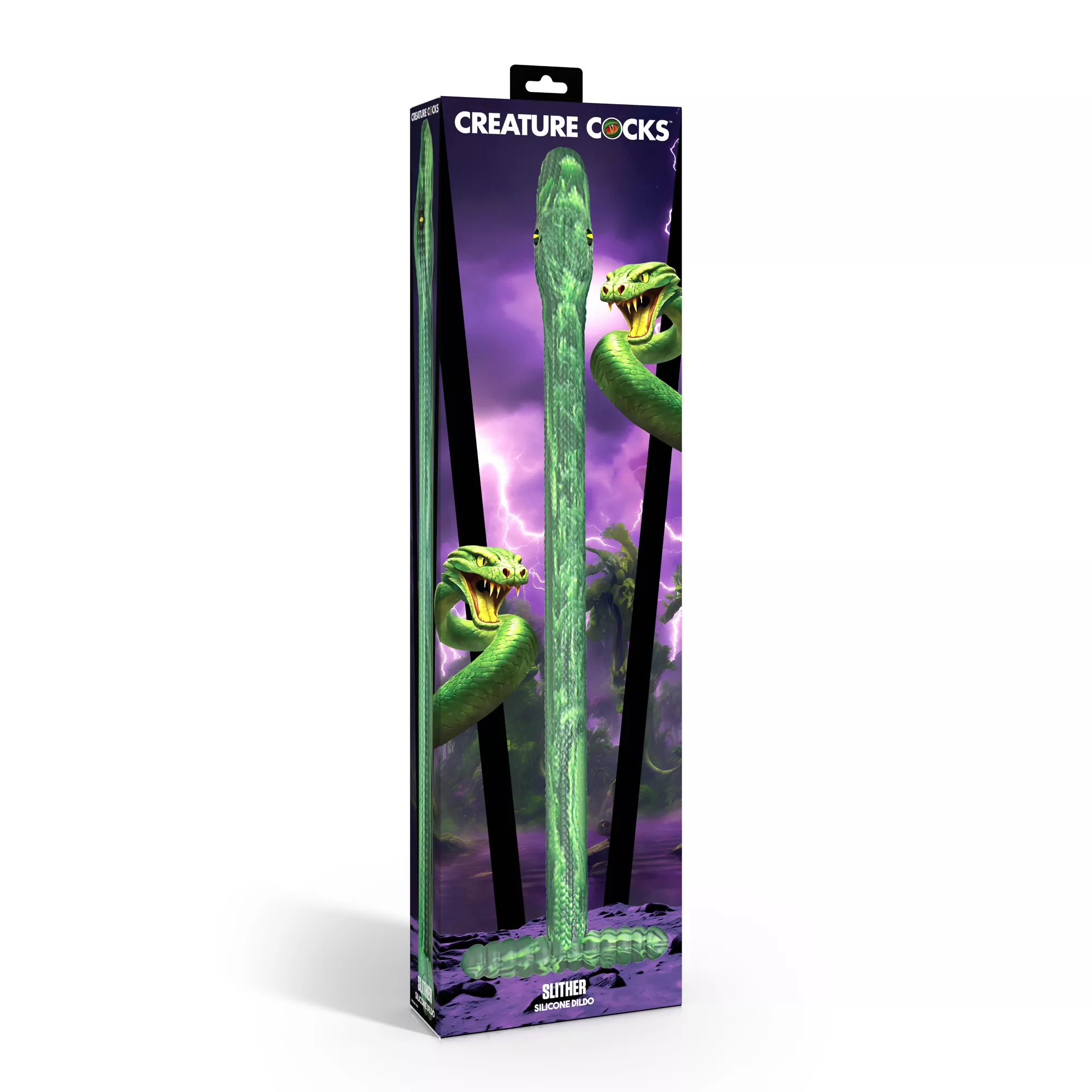 How may inches can you take of the officially licensed Slither Dildo? This silicone dildo features a unique sleek serpent design and a scaly texture for extra stimulation. Made from a flexible premium silicone material this slithery snake is sure to satisfy your wildest desires and take your fantasy play to the next level.