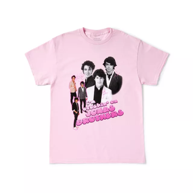 There's no better way to show your love for Nick, Kevin and Joe Jonas than with this officially licensed Crushin' on Jonas Brothers T Shirt. Rock this stylish tee at your next festival or concert and everyone will know you're a huge fan of the Jonas Brothers.
