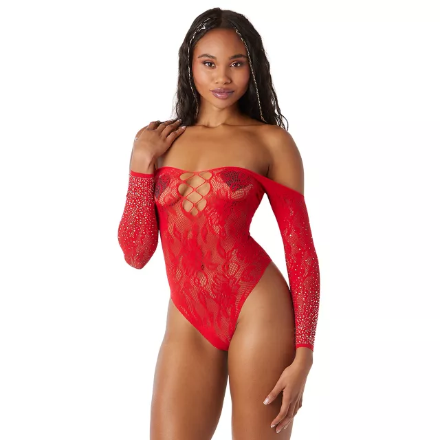 This very alluring red cutout lace off the shoulder bodysuit is a surefire way to heat things up in the bedroom! Look your absolute hottest in this sexy lingerie that's perfect for steaming up your intimacy.