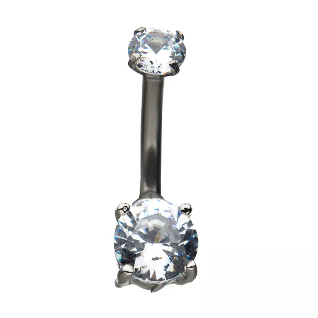 CZ Clear Gem Belly Ring - 14 Gauge
