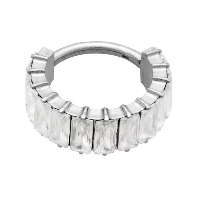 CZ Emerald Cut Silver-Plated ASTM F-136 Titanium Hinged Hoop - 16 Gauge