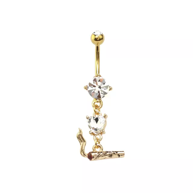 CZ Goldtone Joint Dangle Belly Ring - 14 Gauge