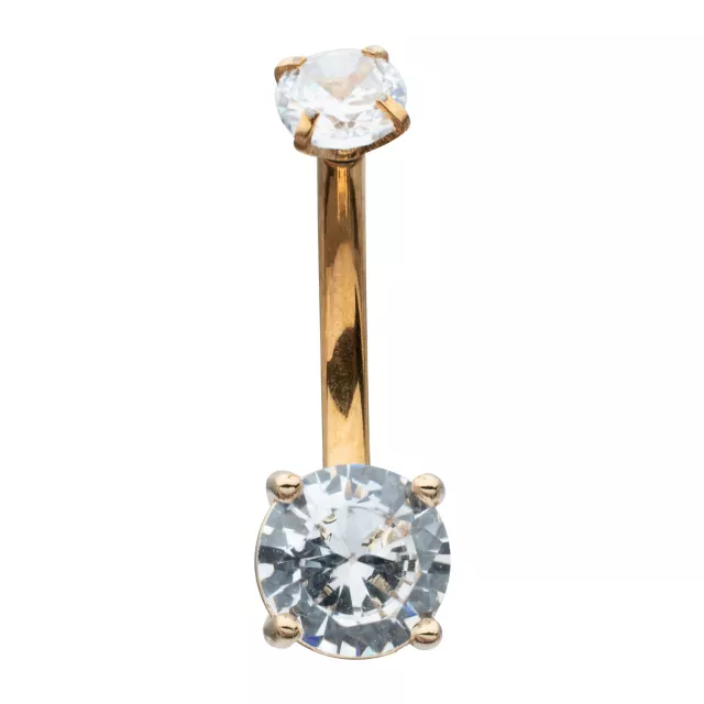 CZ Goldtone Titanium Double Gem Belly Ring - 14 Gauge