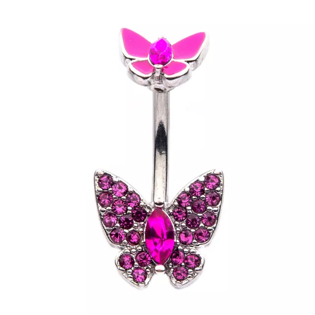 CZ Pink Butterfly Belly Ring - 14 Gauge