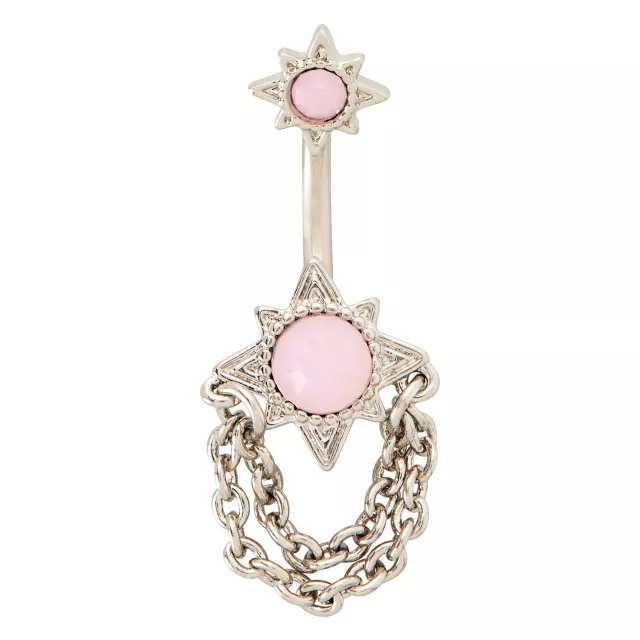 CZ Pink Chain Dangle Belly Ring - 14 Gauge
