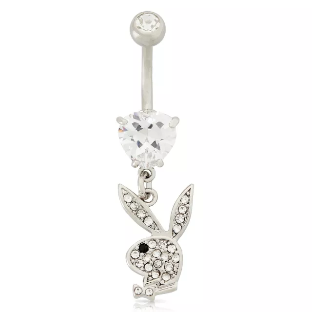 CZ Playboy Bunny Dangle Belly Ring - 14 Gauge