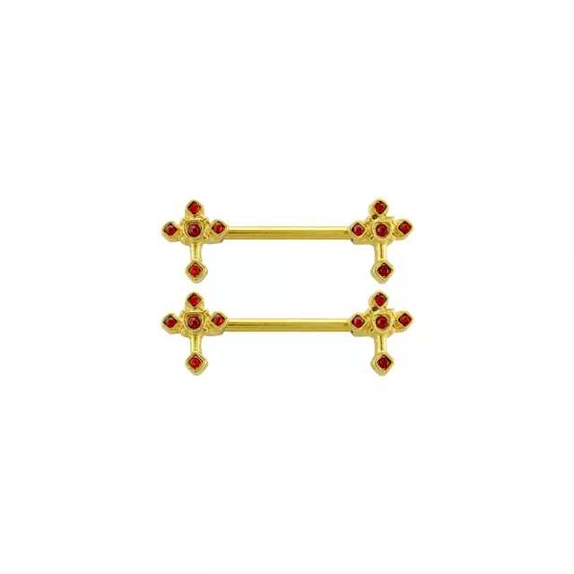 CZ Red and Goldtone Heart Nipple Barbells - 14 Gauge