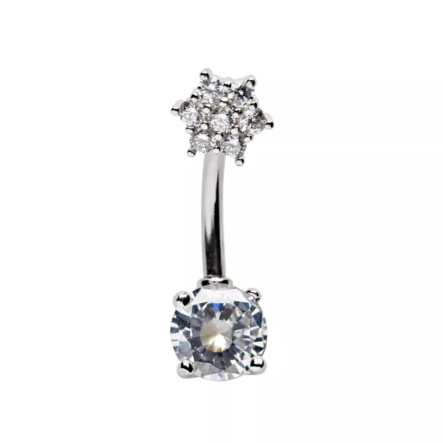 CZ Silvertone Belly Ring - 14 Gauge