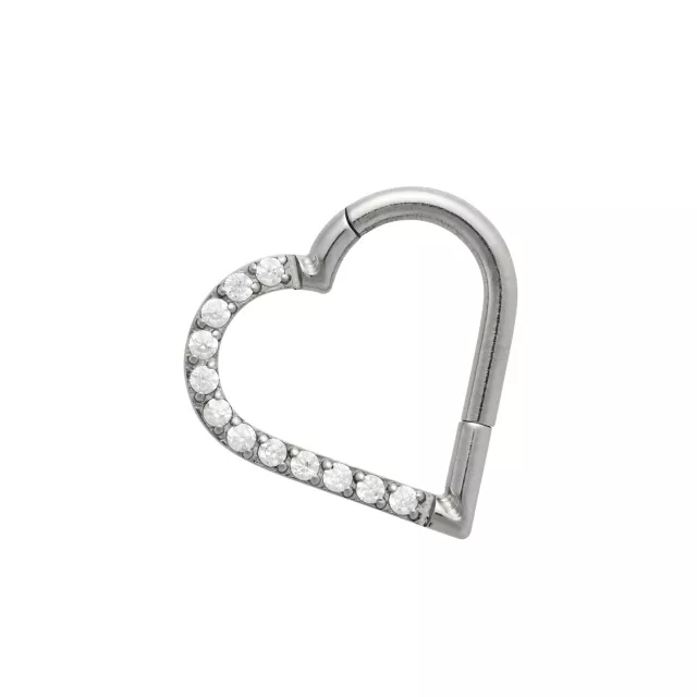 CZ Titanium Heart Hinged Hoop Ring - 16 Gauge