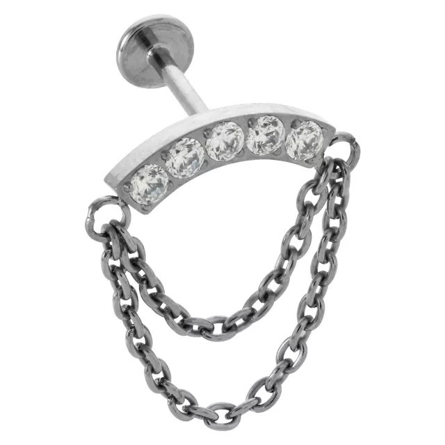 CZ Titanium Helix Double Chain Earring - 18 Gauge