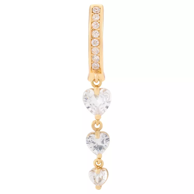 CZ Triple Heart Titanium Dangle Bar Belly Ring - 14 Gauge