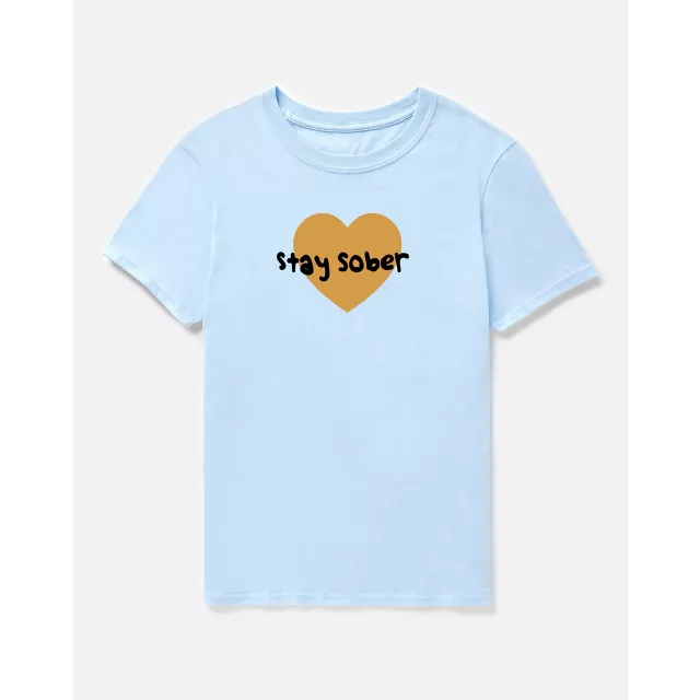 Stay sober and look good in this light blue Stay Sober t shirt from D'Aydrian Harding! This airy cotton t shirt features a crew neck design with a heart graphic on the chest along with the words, "stay sober."
