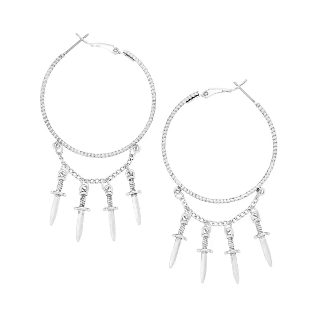 Dagger Dangle Chain Silver-Tone Hoop Earrings