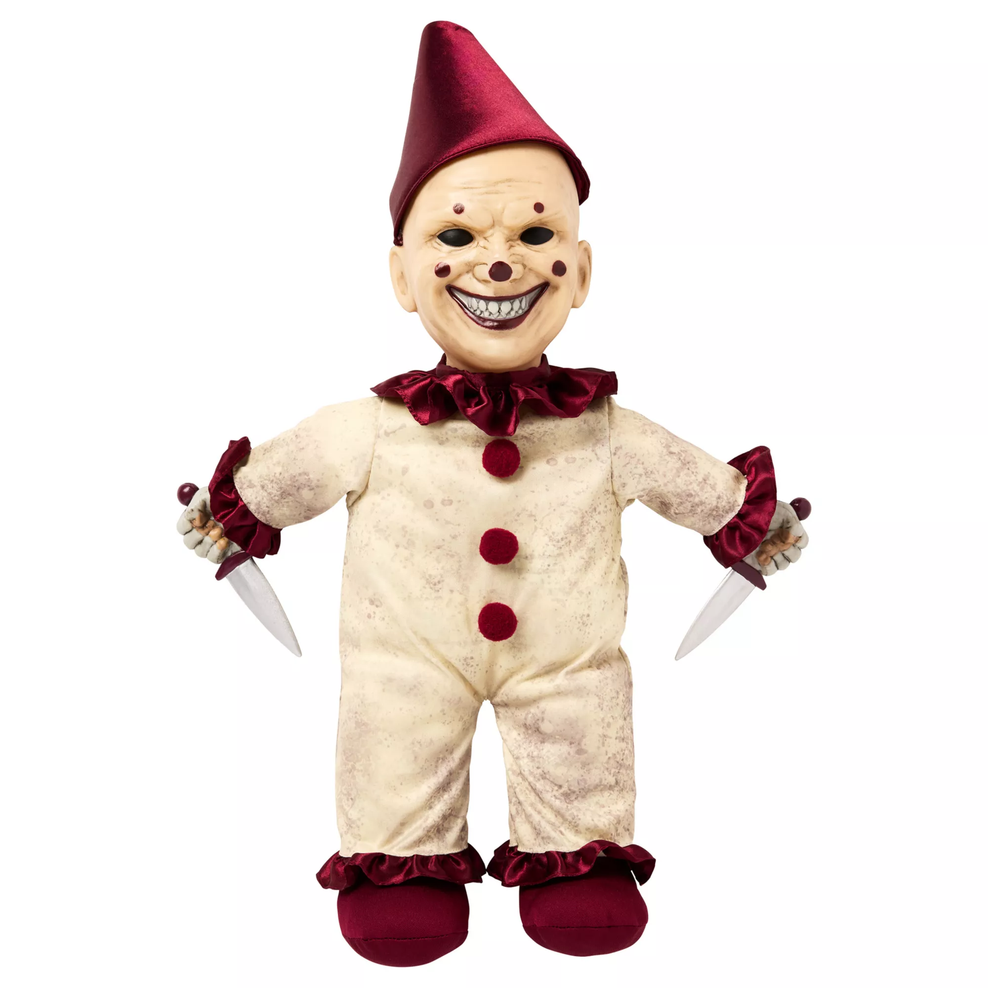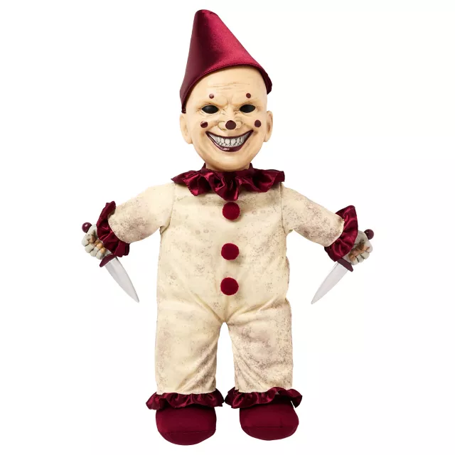 Watch out, dagger Mike is fun-sized and ready to play! Show some love for your favorite animatronic when you bring this Dagger Mike Doll home. Cuddly, creepy-cute, and standing just under two feet tall, this animatronic-inspired doll lets out chilling laughter and screams when you press its battery-powered chest activator. Add it to your collection and level up the way you scare!